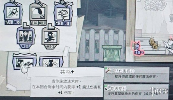 共鸣+魔法伤害提升:提升你造成的任何魔法伤害。当你施放法术时,在本回合剩余时间内获得+1魔法伤害和+1伤害。