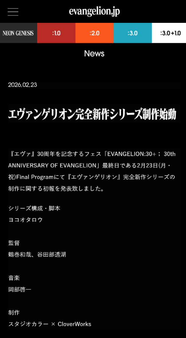 《新世纪福音战士》完全新作系列制作决定