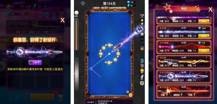 游戏深度整合斯诺克计分规则与罚分判定机制,单局支持15红球+彩球完整流程,并设有“自由球”“僵局重摆”等专业判例。操作采用双阶段蓄力系统:首段调节力度,次段微调瞄准线,配合动态辅助线提示,大幅降低学习曲线。单人模式含120关技巧挑战,涵盖K球、贴库、翻袋等高阶战术场景。球杆系统引入耐久度与熟练度双成长模型,每支球杆拥有独立技能树分支。