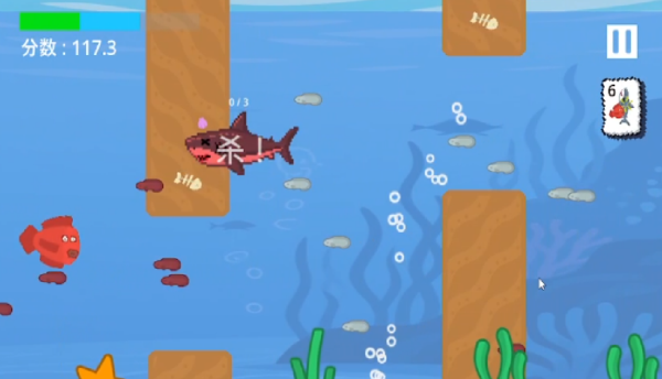 本作以双身份机制为特色:玩家既是主动追击小型生物的捕食者,也需在限定区域内闪避巨型鲨鱼的围猎。游戏采用高帧率像素风呈现动态海底场景,结合弹簧板弹跳、定时炸弹干扰等交互设计,强化操作响应与临场节奏感。持续吞食小鱼扩大体型是通关关键,最终能否反杀鲨鱼,取决于玩家对时机判断与路径规划的综合能力。