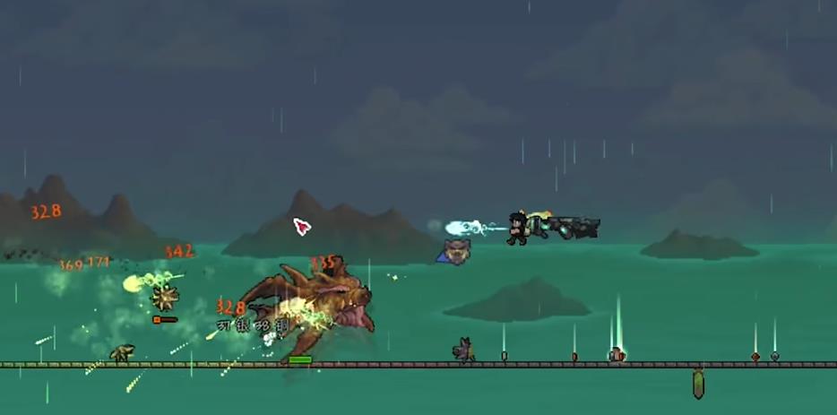 如果被击破或者等待8秒后,便会爆裂并分裂为三个尖刺,同时生成一团的毒云。在毒云消散后,BOSS再次执行三次冲刺,冲刺结束后短暂停滞,随后召唤两组鲨鱼,鲨鱼会对玩家进行短时间追踪。该BOSS拥有高防御属性与特殊减伤机制,可使自身承受的伤害降低50%,且所有攻击均附带辐射效果,对玩家生存构成持续威胁。