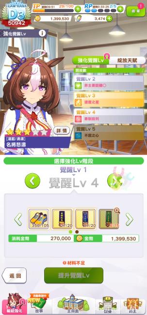 名将怒涛在新人战后会获得一个负面状态,进行自主比赛时有概率会额外多消耗五点体力,在目标三达成后该负面状态就会直接消失。她还有个隐藏事件,就是在获得天王奖、宝冢纪念、中山大奖赛等比赛胜利时,会触发获得大量属性与技能点奖励。固有的表现上限浮动比较大,再加上觉醒质量比较一般,导致其很难作为大赛角色被青睐。在今后的比赛也很难上场,想让其参加大赛的话就只能输了。