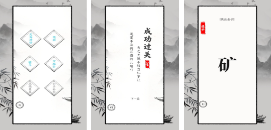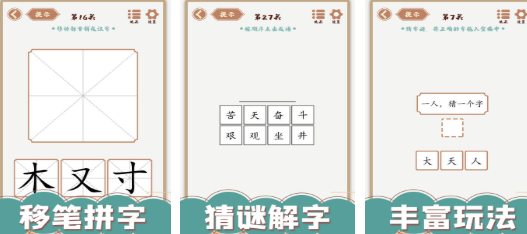 突破传统偏旁拼接逻辑,将单字转化为可旋转、叠加、变形的动态解谜元素。规则设计强调创意性,同一目标字存在多种达成路径。关卡嵌入历史典故、常用成语及生活化语境,辅以水墨风格界面与舒缓音效,兼顾知识性与解压体验。
