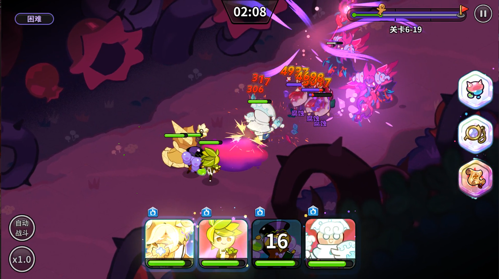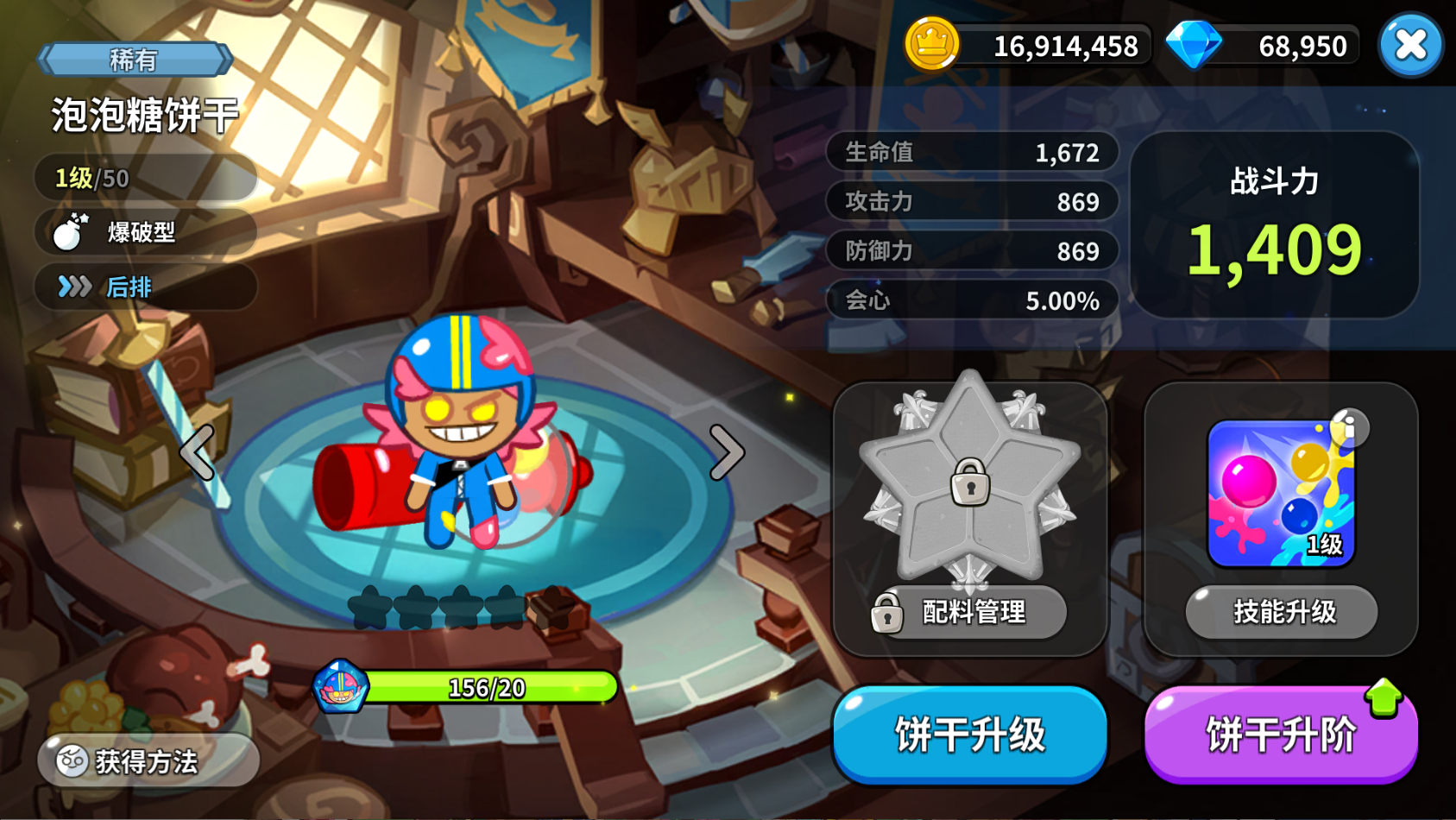 介于当前只有一个超稀有爆破型饼干,如果想要用这类饼干上阵的话,选择也会比较明显。但是,前期有一段时间,我们自身拥有的超稀有饼干比较少,有一个输出位可能需要用稀有饼干暂时替代。一般这种情况下,有些超稀有的爆破型饼干还是可以用的。