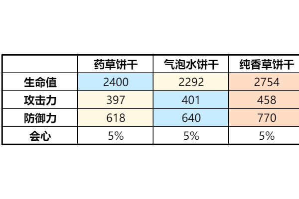 目前恢复型饼干的治疗量都是基于饼干的攻击数值去计算的: