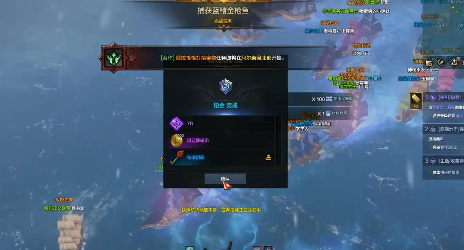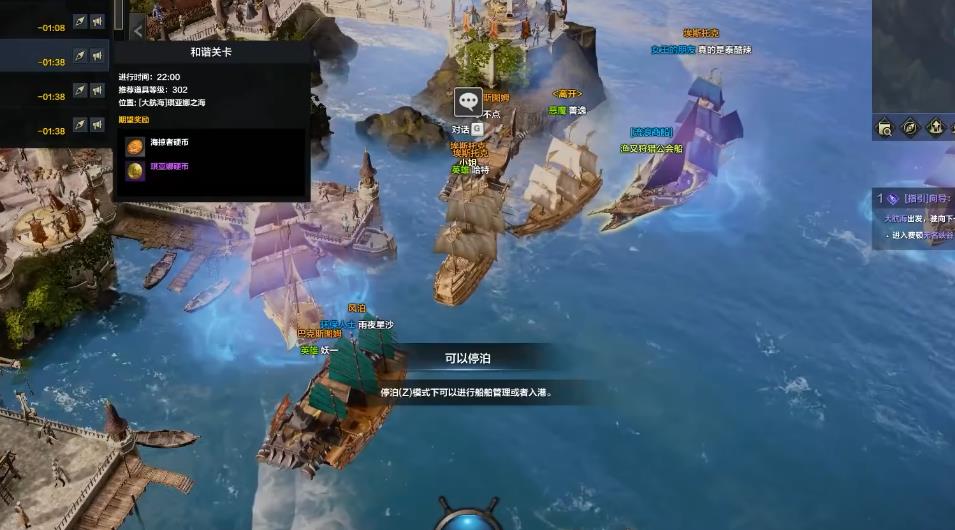 航行合作在活动里,玩家需要观察左上角的小闹钟,到达对应时间后点击指南针,在地图上便会出现标注后前往对应区域。该活动总共有四个阶段,每完成一个阶段,达成特定贡献度后才可继续下一个任务。不过在去之前,可以在每日任务中接取任务寻找海掠者心,不仅能获取突破时的强化材料,而且还能顺便完成设计图的获取。在第一个阶段接取的任务是进行打捞作业,点击Q技能打捞宝箱即可,没有难度。