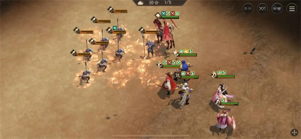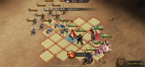 然后就可以结束回合了,被动回合,敌军会过来送人头。最后站位如下。