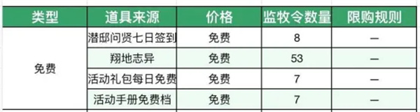 活动周期内,可免费获得75枚监牧令,具体如下: