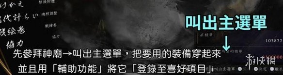 把你接下来要用的装备穿戴好,然后通过「辅助功能」将其「登录至喜好项目」。