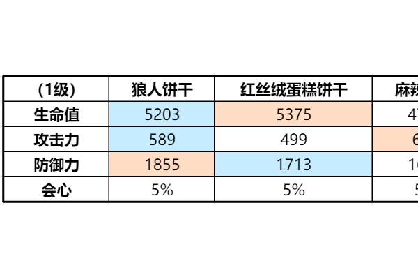 根据突击型饼干的1级基础数据来看,狼人饼干的综合实力是不错的,红丝绒蛋糕饼干和麻辣饼干也有独特的点,相比之下,其他饼干的基础数据略微普通一些。