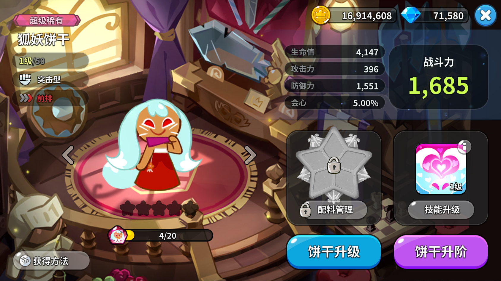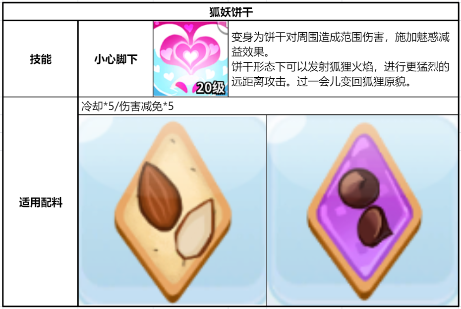 狐妖饼干也可以减少目标的防御力,但是这个减少防御力的范围只限对方前排的选手,但是变身后的攻击可以打到后排。狐妖饼干适合PVP。