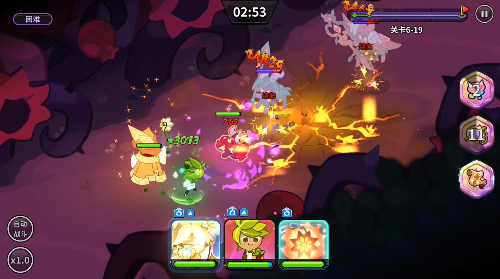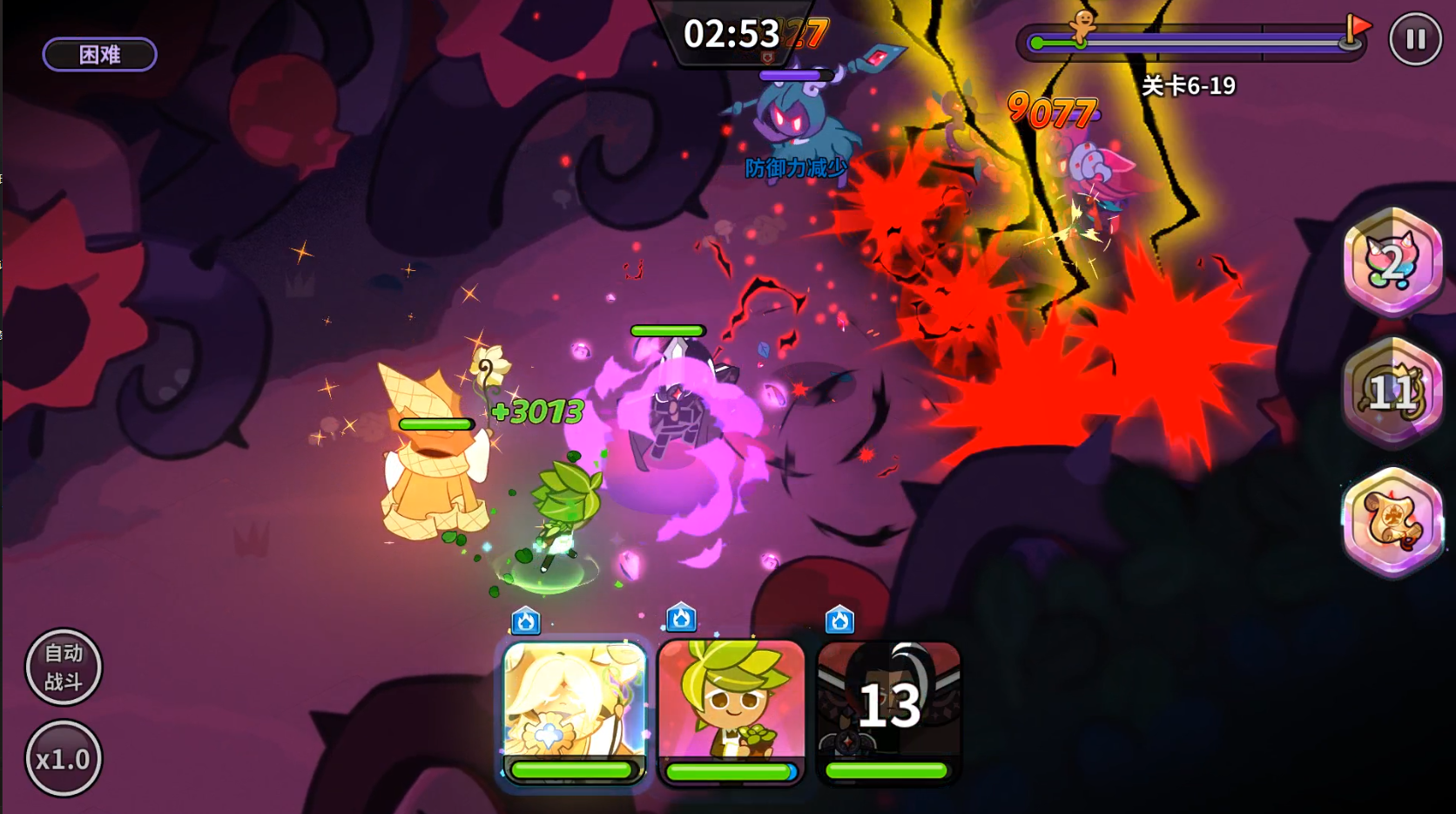 能降低对手防御里的饼干,这个效果不管是PVE还是PVP都很适用。黑巧克力饼干的技能是群攻,在降低对手防御力的时间内,也可以变向理解是己方输出饼干造成的输出持续增加。但是,在自动状态下,黑巧克力饼干的这种造成对手debuff的技能最好预设先释放。