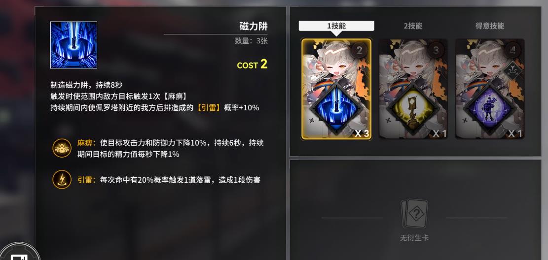 觉醒二是增加我方引雷后排的攻击力,觉醒五是让伏特值获取额外加500,提升出牌的流畅度,并增加15%的引雷伤害。如果玩家不玩妮蔻拉队的话就不抽,抽取的话佩罗塔最推荐抽取一觉、二觉和五觉。她的生命技能名为指定交易品买卖,会增加太阳电池阵30%的购买量与5%的电力上限,不值得为了生活技能去抽零命的本体。佩罗塔的觉醒在所有的角色梯度感较强,每个效果都会有明显的作用。