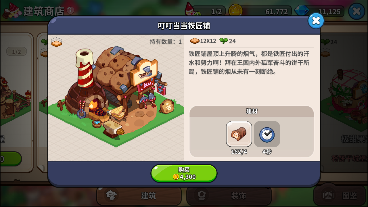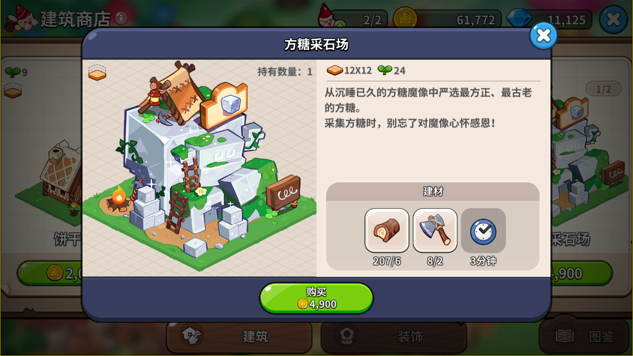 生产建筑方面的任务五花八样,小仙贝建议大家优先完成建设产生刚需物资的建筑,比如说叮叮当当铁匠铺、木匠小屋和方糖采石场等等。