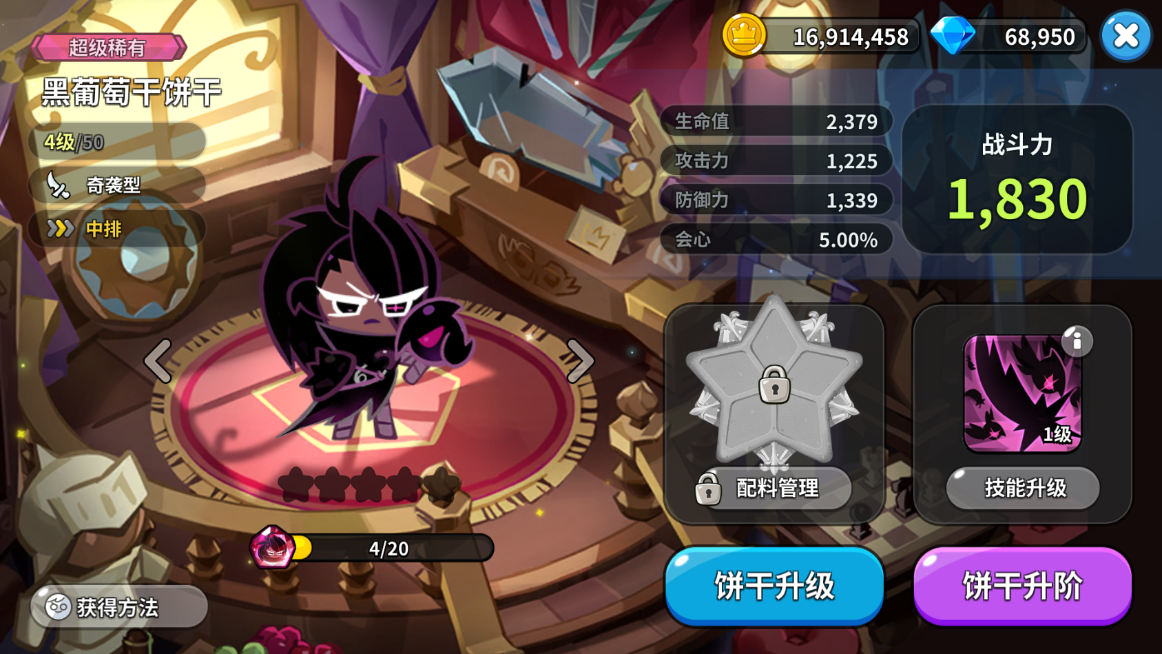 优先推荐5攻击,这样能使黑葡萄干饼干伤害更高。
