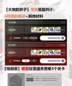 在通关普通模式之后会解锁一个“苦难模式”,关卡难度会有明显的提高。基本上来说就是普通模式可以拿满基础奖励,然后挑战模式挑战自我,这个在很多二游中都有类似的设计。