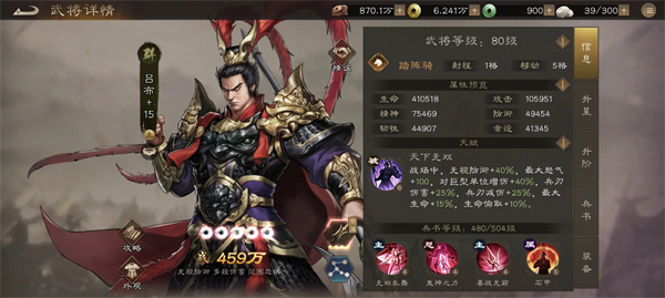 吕布:裸攻28万,1650万战力,满星满神兵满100装备,星符带5星日火,5星日金,5星日木。兵书30以上。