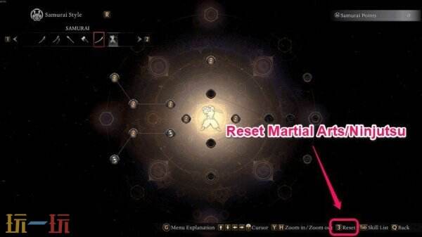 重置当前流派:仅重置当前屏幕所显示的技能树(如武士或忍者)。