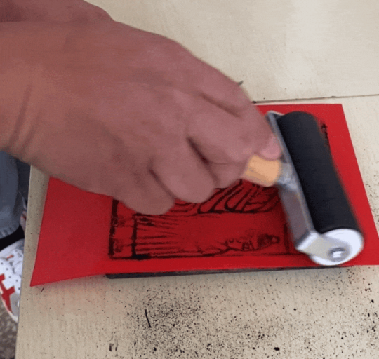 刻好之后,在雕版上刷上墨,用红、绿、黄等颜色的纸张进行拓印。也可在拓印完毕的作品上手工上色,着以敷彩点睛之笔。