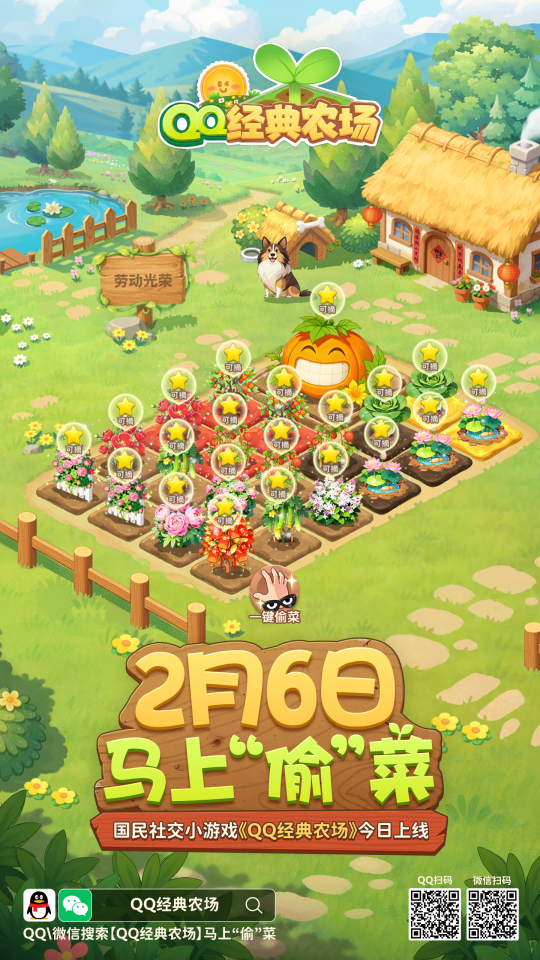 2月6日,腾讯经典社交玩法《QQ经典农场》正式回归QQ,并在小程序同步上线。该游戏由腾讯魔方工作室群研发,玩家无需下载,只需在QQ和平台搜索“QQ经典农场”,就能一键回归,马上“偷”菜。 为迎接这一承载了17年国民记忆的经典IP回归,QQ还特别准备了专属开屏仪式,让玩家一秒回到种田偷菜的日子。