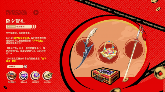 2月16日除夕当天19:00,我们将在游戏内通过邮件为队长发放特别的「拜年红包」,恭祝您新春快乐!