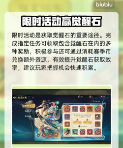 觉醒石是整个觉醒过程里最难搞的材料,碎片合成那条路效率太低,一百个碎片才合成一颗,建议大家优先从其他途径入手,第一个是赛季商店,赛季总共持续四十五天,商店每隔十五天刷新一次,觉醒石会稳定出现在里面,赛季积分如果超过一百万,记得优先把觉醒石兑换掉,别被其他东西分散掉积分,第二个是限时活动,活动给的数量有限,但能拿的时候尽量不要错过,第三个是竞技场,排名越高打赢对手之后拿到的奖励越丰厚,觉醒石也在其中,有条件冲排名的话这个途径长期来看收益还是不错的。