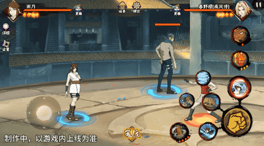 若在不同队友释放二技能后使用一技能,可以触发不同效果。在光司的砂严拳命中并击飞敌人后释放一技能,雨乃会瞬身到空中,使用医疗水遁·水螳螂俯冲斩击。