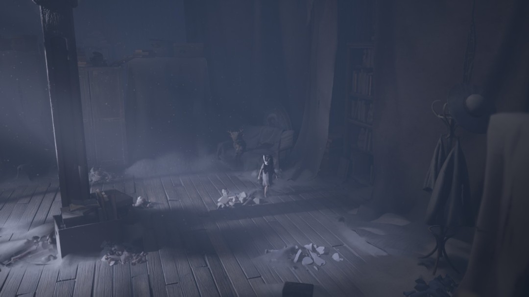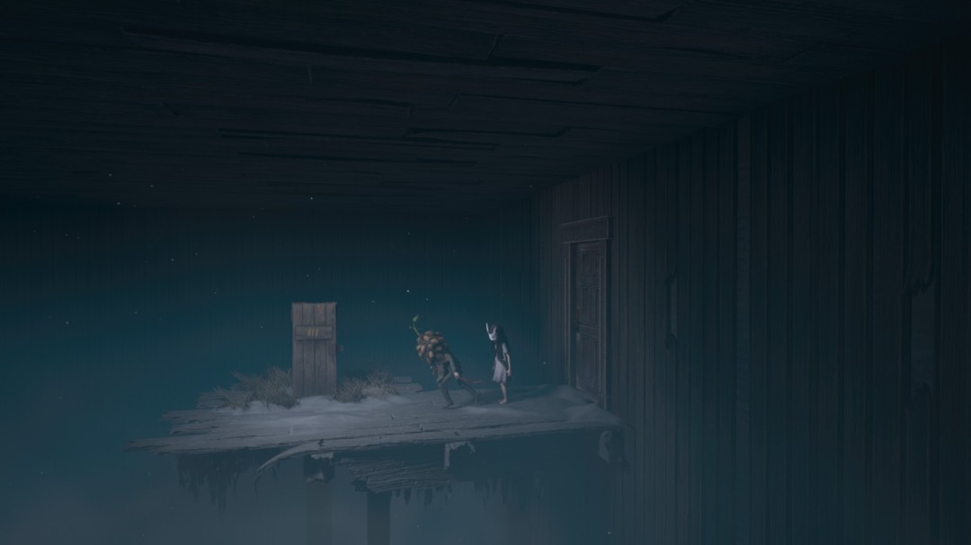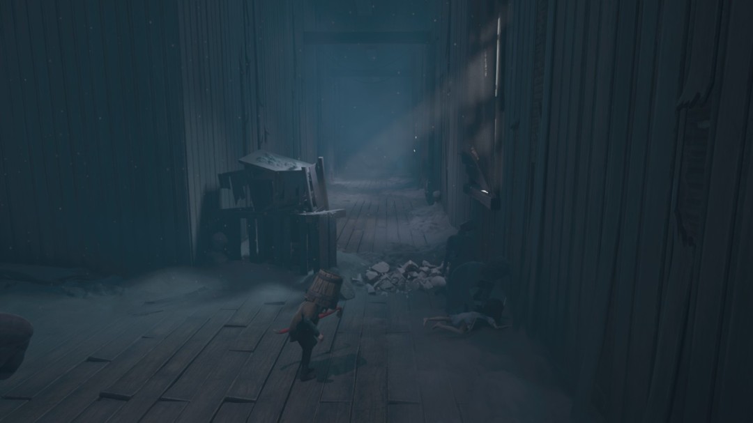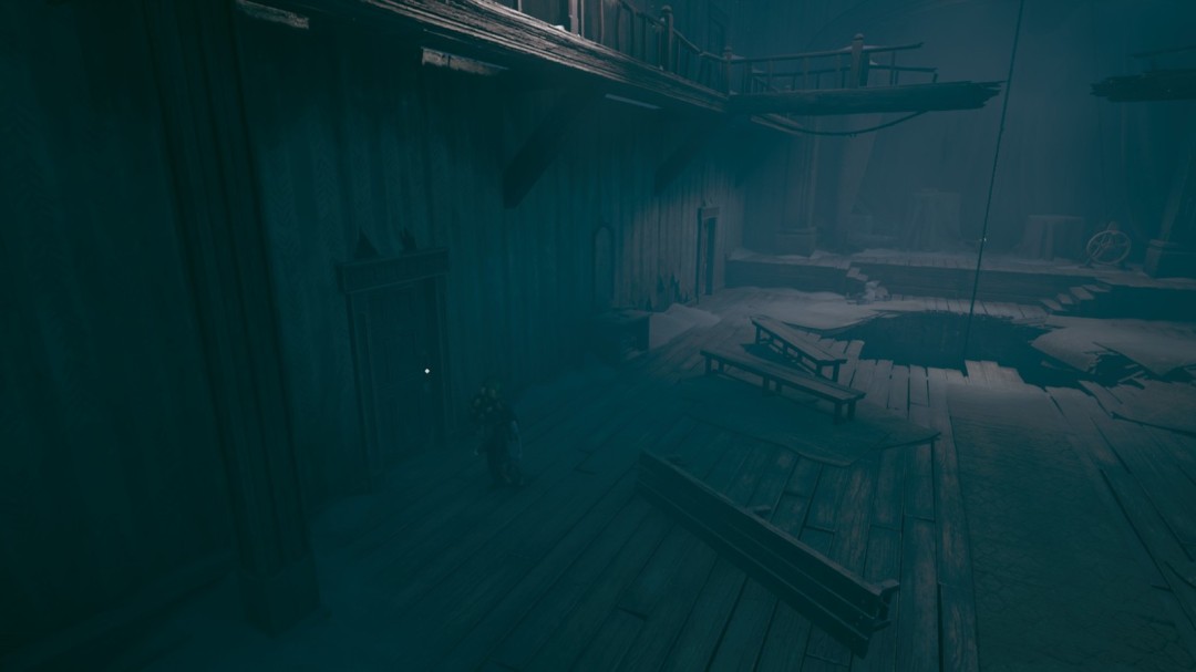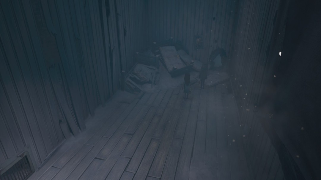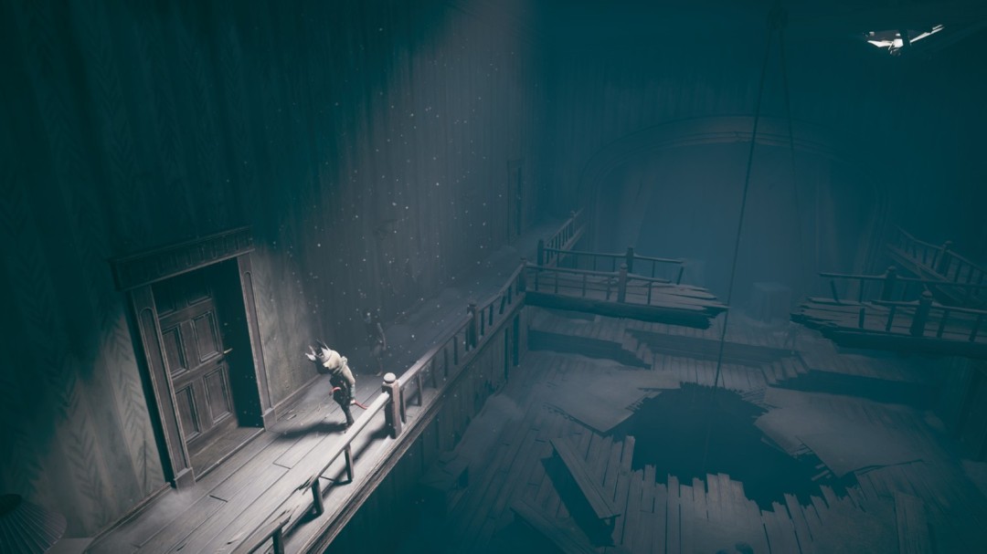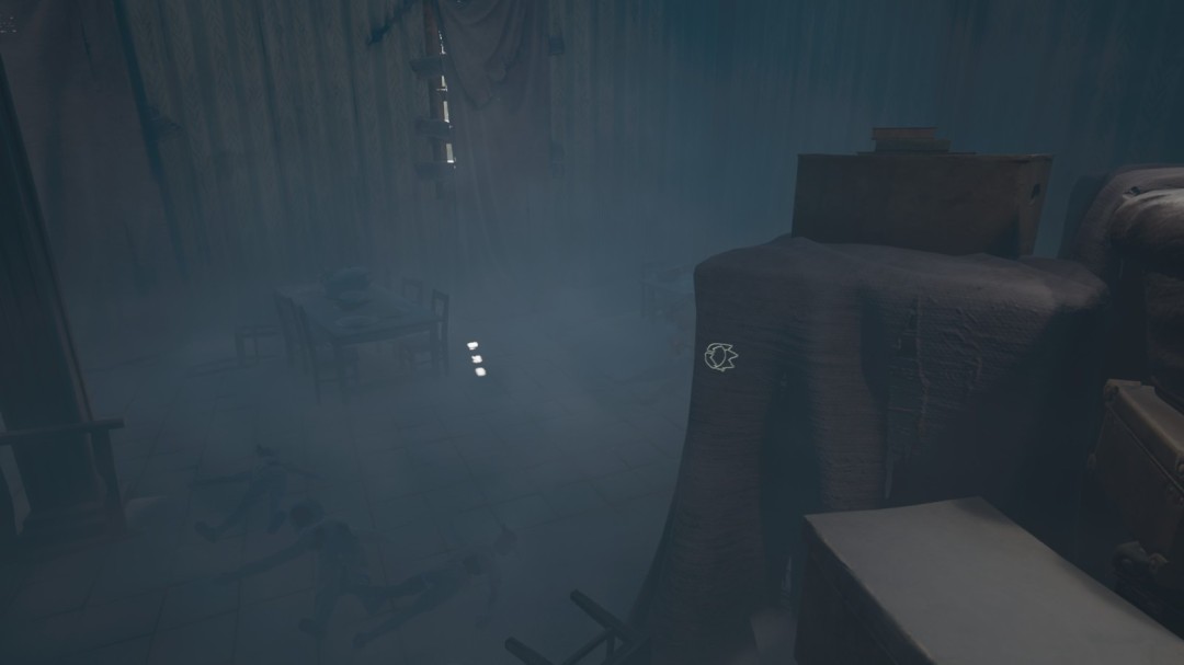 进入中间有一根绳悬挂一个尸体,和三个敌人的房间,击败敌人后一定先不要和绳子互动(强制结束章节),先去左下角开门