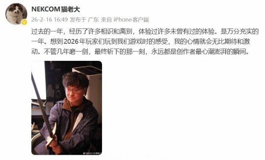 猫老大说:过去的一年,经历了许多相识和离别,体验过许多未曾有过的体验。是万分充实的一年。想到2026年玩家们玩到我们游戏时的感受,我的心情就会无比期待和激动。不管几年磨一剑,最终斩下的那一刻,永远都是创作者最心潮澎湃的瞬间。”