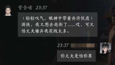 燕云十六声游戏结交NPC可以提升好感获得奖励,管含晴位于醉花阴,她爱逛街,但是担心她丈夫不同意,玩家只需要和她聊天的时候让她放心的去逛街就可以结交了,具体流程可参考下文。