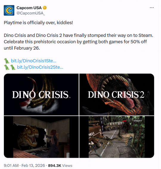 近日,卡普空为经典游戏粉丝带来了一份惊喜大礼——《恐龙危机》1与2两部作品现已突然上架Steam平台,并同步开启首发折扣,一起来看看吧!