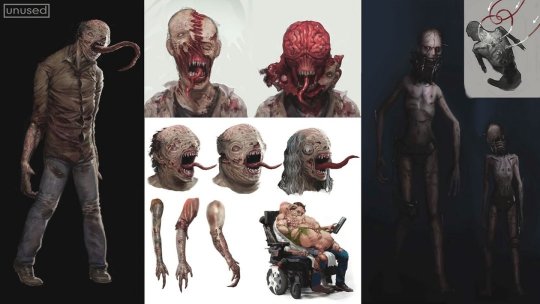 而在《生化危机2:重制版》的官方概念设定图中(可在游戏内解锁,也可通过Creative Uncut查看),曾披露过一项被废弃的怪物设计——那是一种处于早期变异阶段、正向舔食者进化的丧尸形态。我认为,《生化危机9:安魂曲》的预告片中已经出现了这种设计。