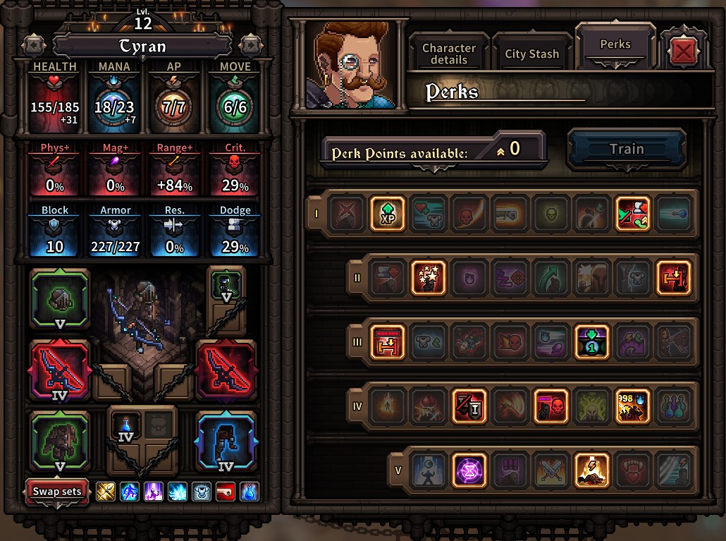 每回合,你需要决定是尽可能多地击晕并击杀目标,还是为某人加持闪避效果,同时消灭残余敌人。到了后期,随着AP值的增加,你甚至可以同时实现这两种策略。这正是这款武器如此强大的原因之一——它总能为你提供多种应对当前局面的选择。一名神射手或许无法独自撑起整个团队,但他绝对能胜任自己那部分的防御任务。如果短弓和手弩没有略微过度强化,这本该是远程武器的完美典范。它的平衡性已相当接近最佳状态。