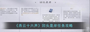 燕云十六声一款玩法自由度较高的武侠角色扮演类武侠游戏,地图上有各种任务等你来完成,一些小伙伴想要知道南岸之五何以为报任务怎么做,今天小林将给玩家们带来关于南岸之五何以为报任务攻略。