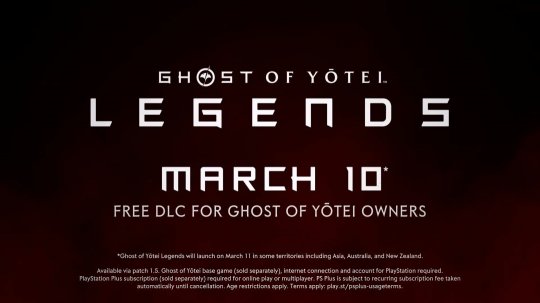SIE和开发商Sucker Punch Productions宣布,《羊蹄山之魂》免费多人DLC传奇(Legends)”将于3月10日通过1.5版本更新推出。