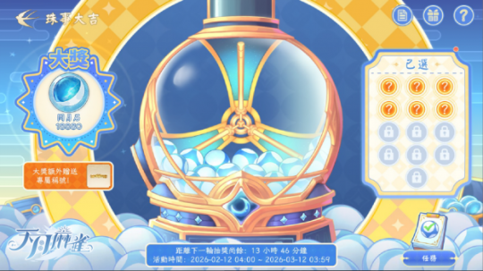 而春节另一项重头戏,首次推出的限时活动「珠事大吉」中,系统将在春节期间每日抽出6个号码,玩家只要于活动中选择幸运号码即可参与抽奖。只要所选号码与系统抽出的号码相同,即可获得闪月石奖励,相同数目越多,奖励越丰富。全中6个号码,更可一口气获得18880闪月石及「盖世欧皇」专属称号。