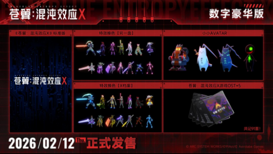 《苍翼:混沌效应X》中将收录来自《苍翼》(BLAZBLUE)系列的14名角色,以及来自知名游戏《死亡细胞》及《艾希ICEY》中的2名联动角色,并包含由Arc System Works监修制作的全新原创剧情。