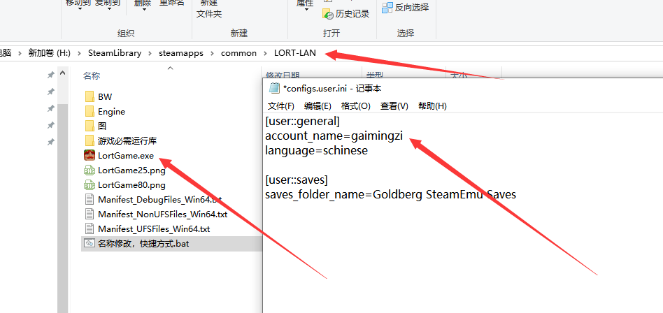 双击打开游戏目录下的“名称修改,快捷方式.bat”,找到“account_name=gaimingzi”,把“gaimingzi”改成自己想要的名字,保存。