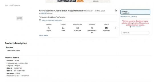 在亚马逊页面上发现了这本艺术画集的商品页面不仅列出了产品本身,还列出了其出版商Titan Books。该出版社与育碧有着长期的合作历史,自2012年以来一直为《刺客信条》系列出版艺术画集、指南和百科全书。