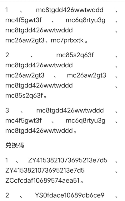 部分兑换码依然有效,而且其中有一些是玩家喜欢的。mc7k7jkh6w这个兑换码可以得到6000颗钻石、20个火药,适合所有平台的玩家使用。EMMMyxhj兑换码给玩家带来的是8000个钻石以及附魔书;而vip888、svip666兑换码可以得到一个月度限定奖励,每天的任务都会有所增加。通过兑换码,玩家可以快速获得资源,提高角色的装备。