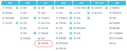 在综合菜单 - 战斗类别中新增【怪怪系统】菜单,使用原有快捷键时,同样可以打开新怪怪菜单。