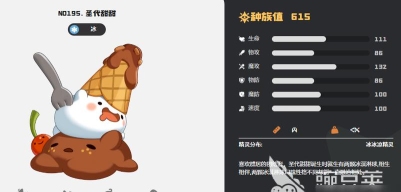 圣代甜甜的话,放在阵容当中负责的就是控场能力,因为只有当前它的速度效果能达到105,刚好可以比很多对手的效果更强势一些,所以当前他的新手是非常关键的,利用它的特性效果也可以让前面卡瓦重用雪地能力的时候带来更多的冻结加成,这里基础是可以多叠两层冻结的,技能效果上面大家可以带贯手以及霜天,此类技能效果如果遇到的是毒系对手的话,那么其实也可以保证让圣代甜甜的防御效果更强一些,搭配冰钻布鲁斯是因为它可以专门锁住对面换宠的机制,只要对面在叠到5层冻结之后,它拥有自身特性挽留效果,就可以让对面没有办法更换精灵,同时在此时还可以利用最后一个位置的化蝶带来一定的摇篮曲技能效果,让对面在技能能耗堆到10层以上的时候,对面就没有办法释放自己的技能,而且状态效果当中也出不来,最后这里搭配的化蝶基本就是跟冰钻布鲁斯放在一起用了。
