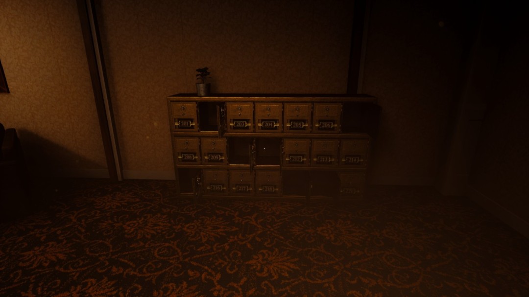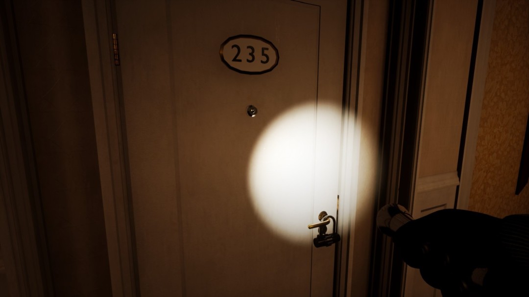 找到对应的房间号码,进去之后房间的床头柜上面有一张纸条,拿完之后放到储物柜里面,集齐之后会提示抬头,天花板上面就是下一关的密码,在235号房间输入密码即可过关。