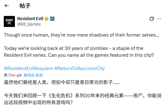 他们曾经是人类,如今却只剩下过去的影子……今天,我们回顾《生化危机》系列中30年的丧尸历史——这一不可或缺的组成部分。你能认出视频中出现的所有作品吗?”官方在视频中如此写道。