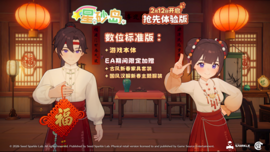 随着台北电玩节画下圆满句点,Seed Sparkle Lab 也正式宣布《星砂岛》将于 2026 年2月12日,农历春节前夕,在Steam平台同步开启抢先体验(Early Access),邀请全球玩家一同登上星砂岛,在温馨的中式田园中迎接新春的到来。为庆祝EA开启与新春佳节,《星砂岛》将于抢先体验期间推出特别首发优惠价格,并为EA玩家准备多项限定内容,期望与玩家携手展开这段共同成长的田园旅程。