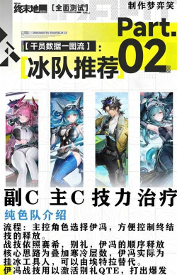 昼雪在队伍里承担的是治疗和承伤的双重职责。她的技能推荐选择,极地救援和饱和性防御。昼雪的存在,让队伍的生存能力得到了很大提升,当队伍血量出现问题,或者需要有人站在前排抗伤害时,昼雪都能很好地完成任务。她和艾尔黛拉形成了双奶配置,基本上,能保证队伍不会轻易暴毙。