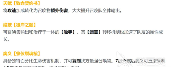 深入拆解圣女的技能,可以发现人海战术和属性成长的结合。丝碧莫的天赋能将攻速转化为召唤物伤害,解决了召唤队后期乏力的痛点。其绝技召唤的触手可以同时输出和治疗,独特的遗言转移机制可以把阵亡的损失转化为队友的属性加成,形成越战越强的闭环。最核心的奥义就是七级天赋之后可以瞬间复制四个强力召唤物。