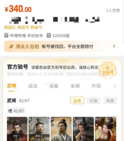 安全有保障:阿里巴巴灵犀互娱旗下平台,业内唯一提供全场永久包赔服务;盗号、冻结等风险全额赔付 游戏覆盖全:支持6000+款游戏,含《三国谋定天下》等热门SLG;在架商品超100万+,累计服务7000万+玩家 服务响应快:千人专业客服团队,平均0.5小时内完成发货,售后平均处理时效仅48小时 精选真商品:官方验号覆盖超100款热门游戏,验号信息确保真实、完整、准确③ 适合人群:注重资金安全、追求高成交效率、需长期稳定交易服务的中重度玩家及诚信卖家