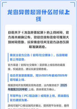 要说龙岛异兽起源的公测时间目前还没有对外公布,但预计将会在2026年的第3季度或者是第4季度。大家可以先点击上面的按钮进行预约,等到游戏上线之后,大家就能够直接进行下载,不过现如今龙岛异兽起源正在测试,但是具体的测试时间也没有对外公布。