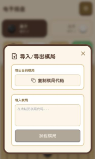 残局功能也是一大亮点,有的时候玩家们在棋下到一半时会发现自己打出了一个非常有趣的残局,想要给其他玩家分享,那么此时你可以通过复制的方式来把这个棋局给导出,然后把它给上传到游戏大厅中,这样其他玩家就可以看到并且下载来体验了。当然同样的,你也可以到大厅中去转转,看看是否有你觉得有趣的残局,点进去之后把他的代码给复制进来,接下来你就可以到自己的房间中来破解这个残局了。